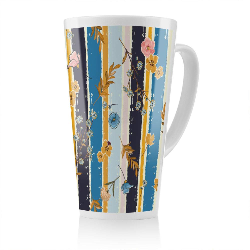 Beautiful Meadow Flowers On Candy Colorful Brush Stripe Latte Mug