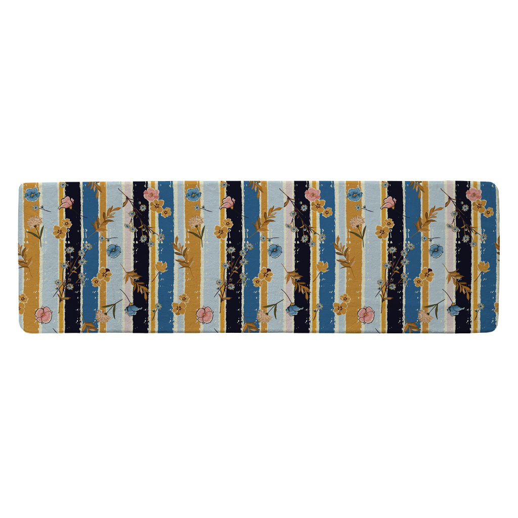 Beautiful meadow flowers on candy colorful brush stripe (Runner Rug)