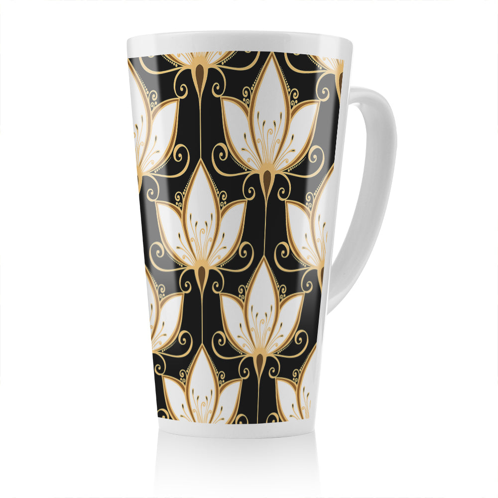 Black & Gold Floral Pattern Latte Mug