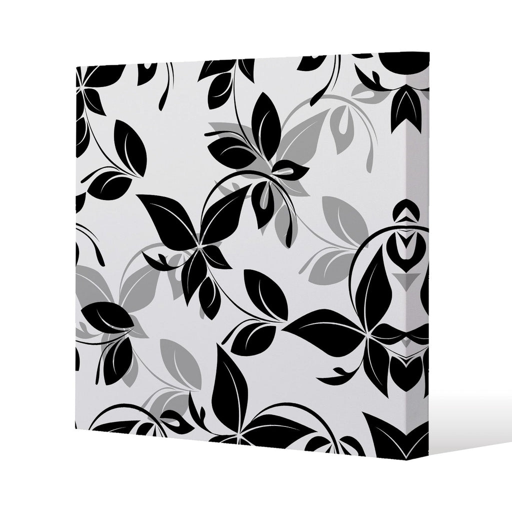 Black & White Floral Slim Style Canvas Print 40x40cm , 15mm Slim Real wood.