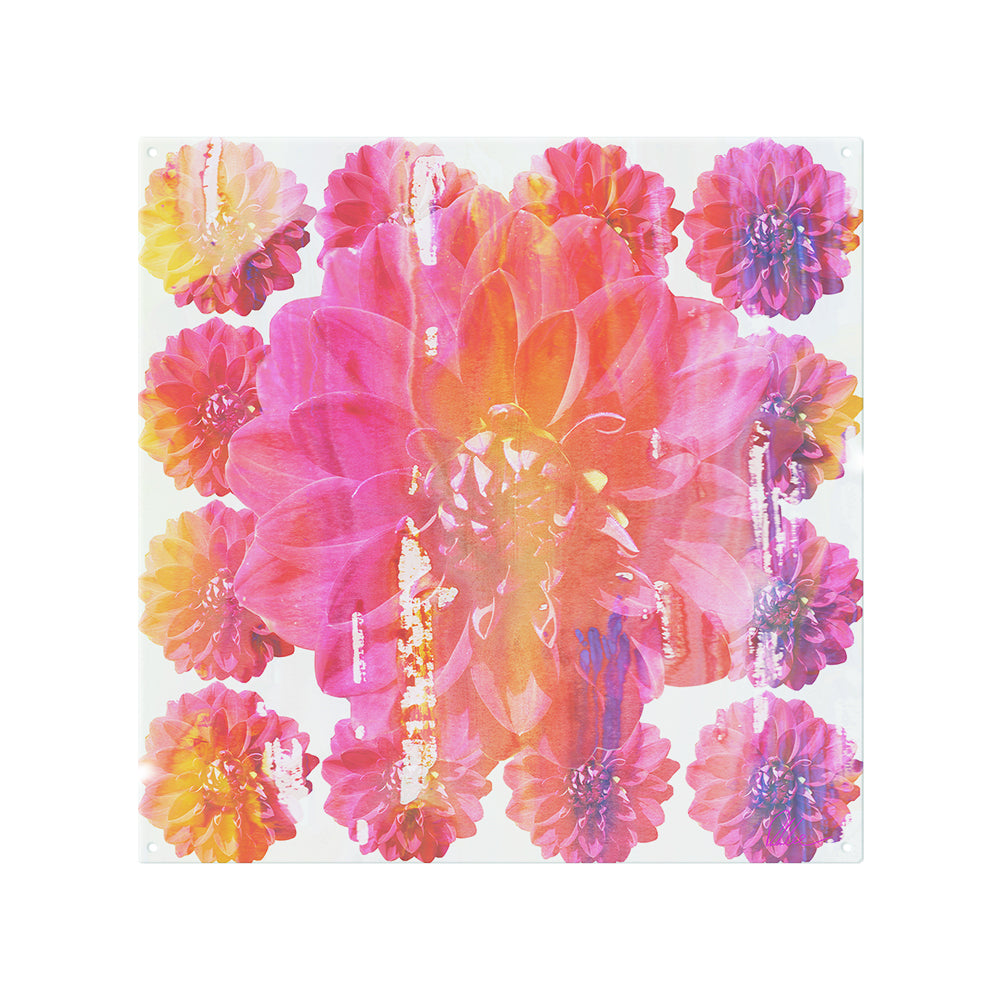 Blooming hand drawn orange and white flowers Slim Style Canvas Print 30x30cm , 15mm Slim Real wood.