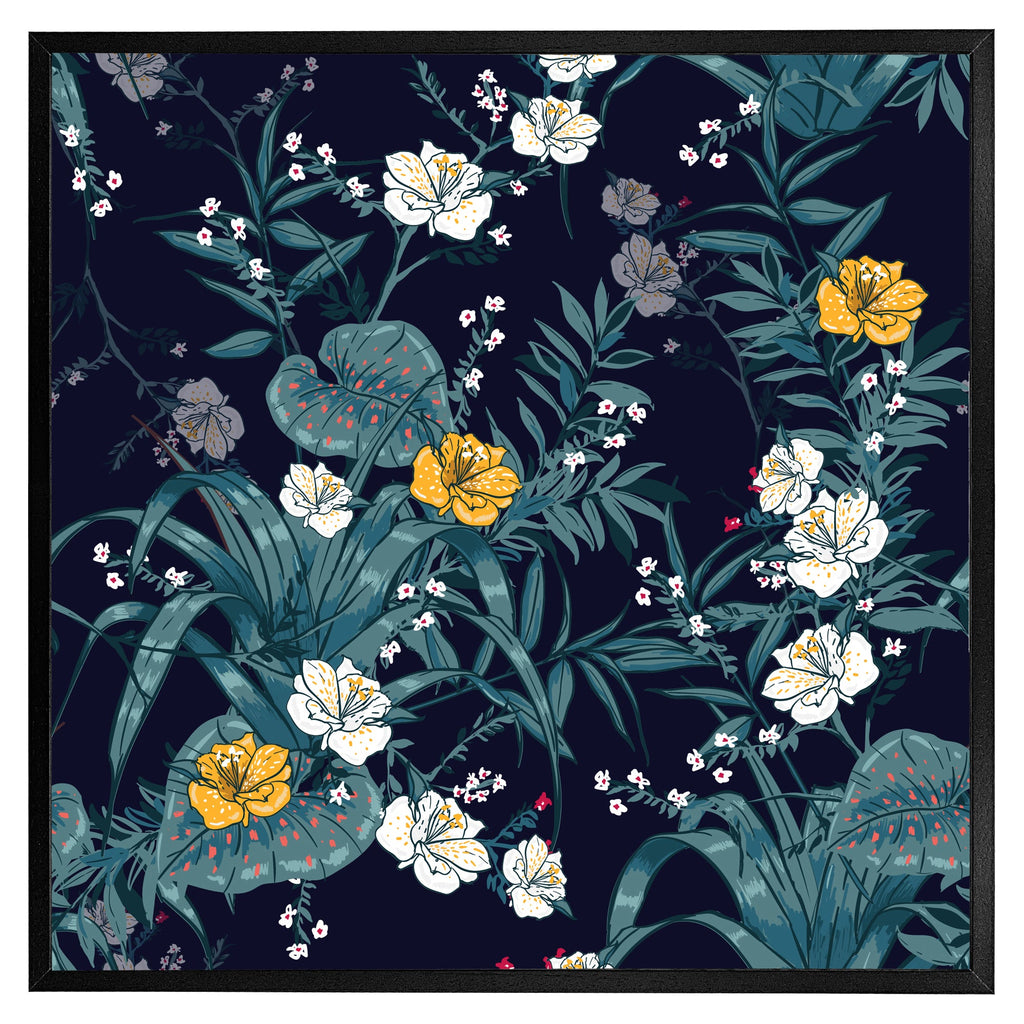 Blue & Yellow Bunches Slim Style Canvas Print 50x50cm , 15mm Slim Real wood.
