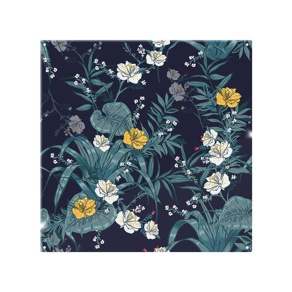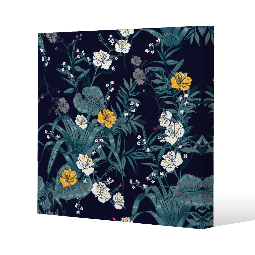 Blue & Yellow Flowers Slim Style Canvas Print 50x50cm , 15mm Slim Real wood.