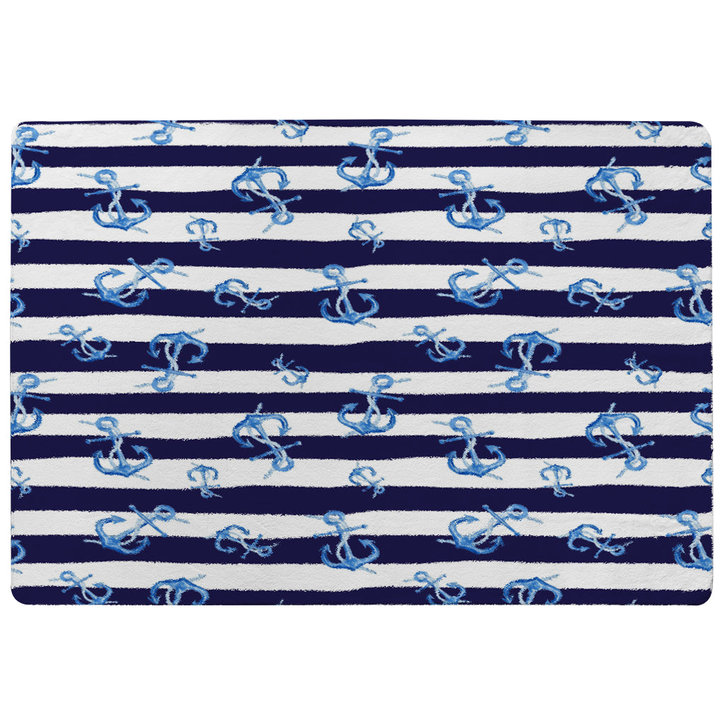 New Product Blue Anchors on Navy Striped Background (Bath Mat)  - Andrew Lee Home and Living