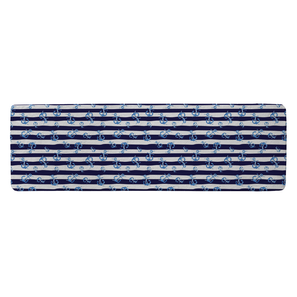 Blue Anchors on Navy Striped Background (Runner Rug)
