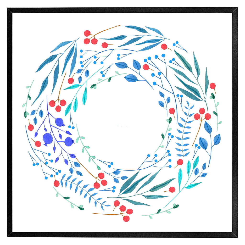 Blue Decorative Reath Slim Style Canvas Print 30x30cm , 15mm Slim Real wood.