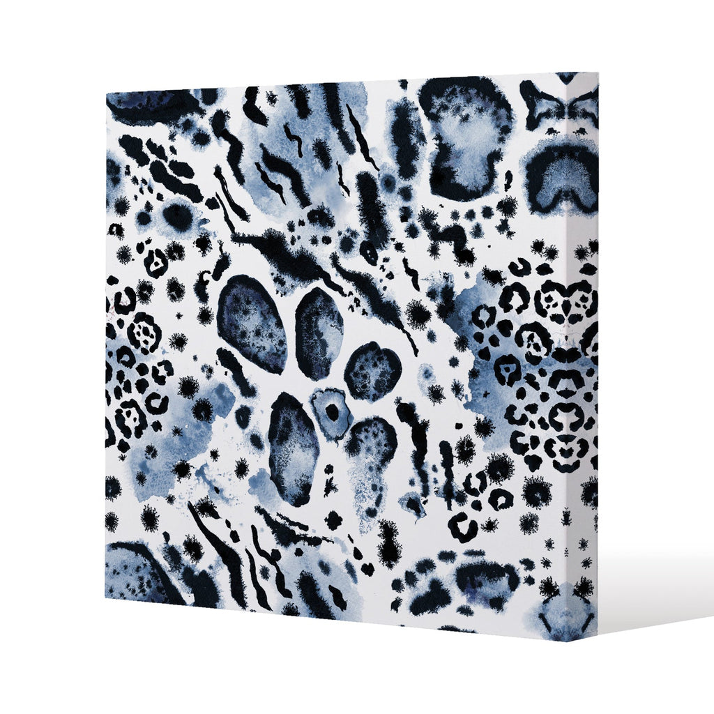 Blue Leopard Print Slim Style Canvas Print 90x90cm , 15mm Slim Real wood.