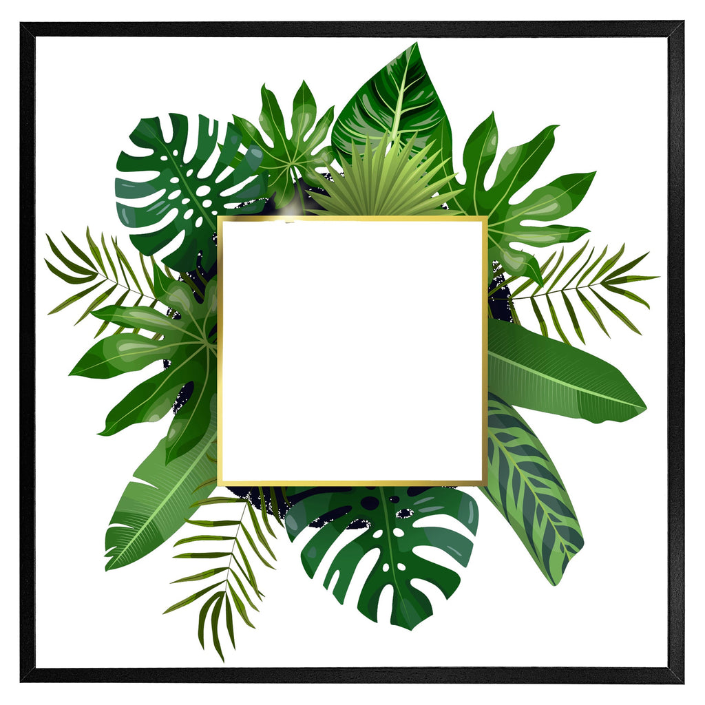 botanical elements with line art Slim Style Canvas Print 50x50cm , 15mm Slim Real wood.