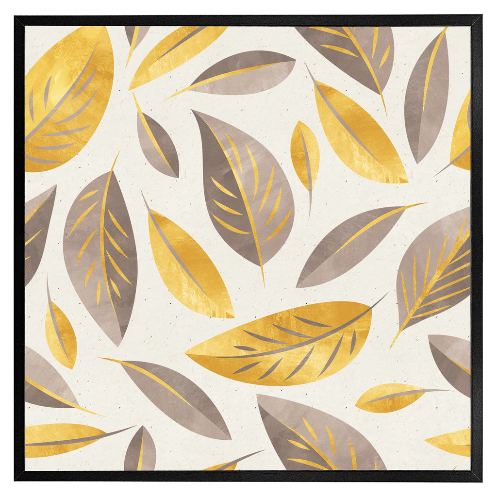 Botanical gold and purple leaf Slim Style Canvas Print 90x90cm , 15mm Slim Real wood.