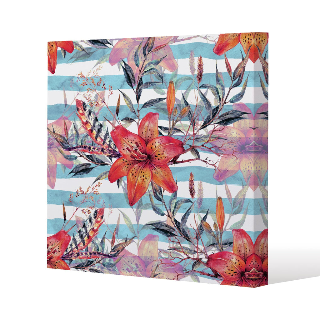 Bouquet of watercolor tiger lilies Slim Style Canvas Print 50x50cm , 15mm Slim Real wood.