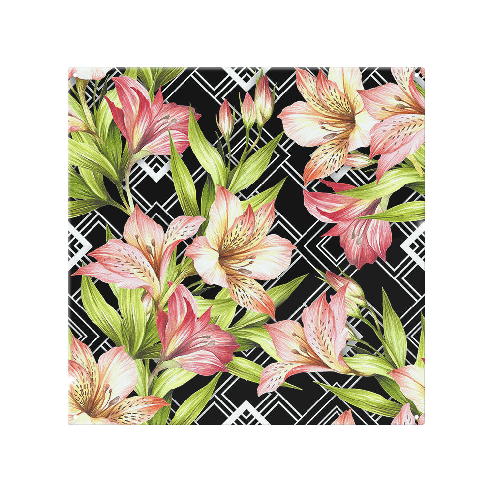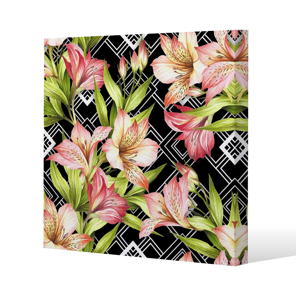 Bright Plants on Geometric Background Slim Style Canvas Print 75x75cm , 15mm Slim Real wood.