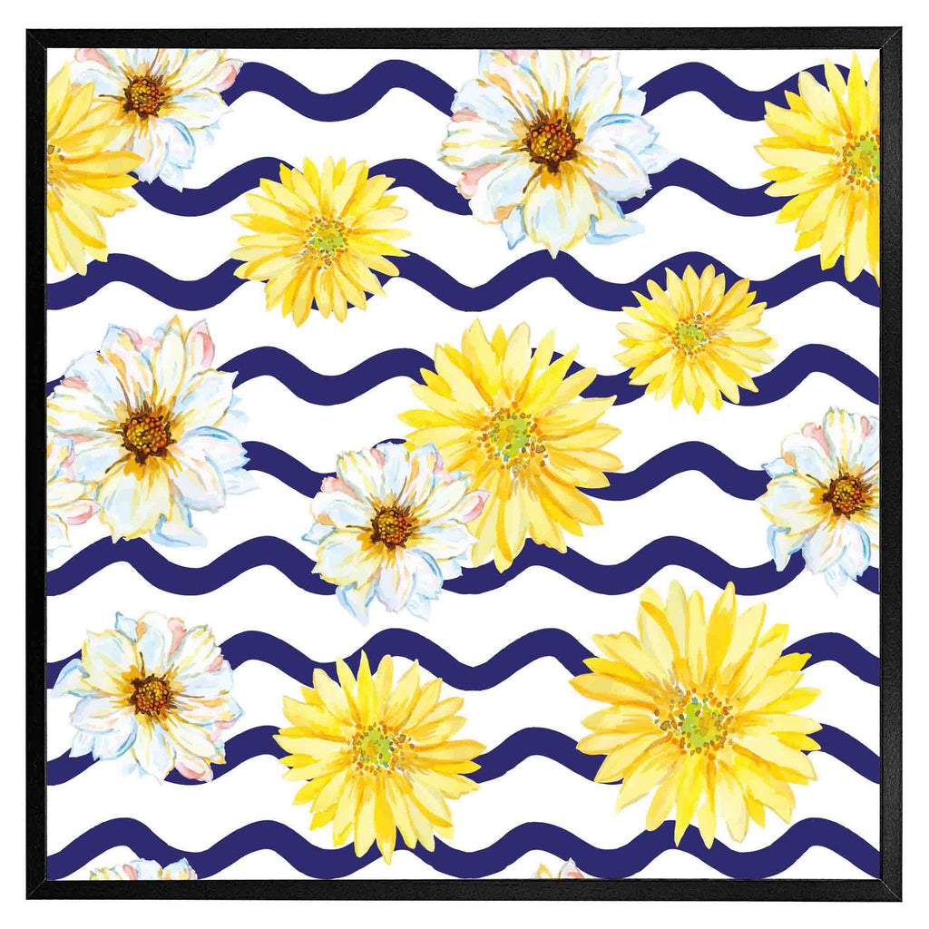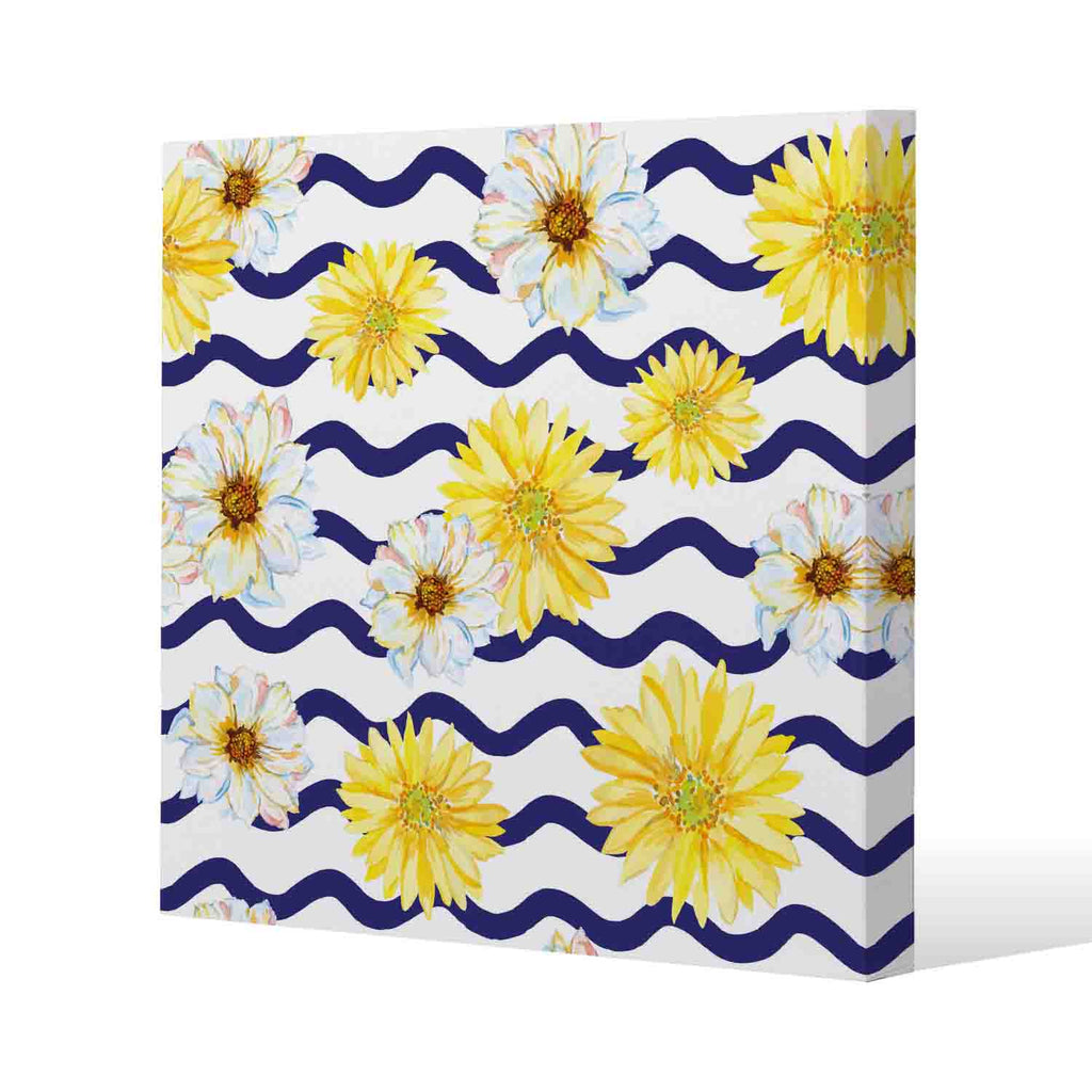 Bright Yellow Flowers & Zig Zags Slim Style Canvas Print 50x50cm , 15mm Slim Real wood.