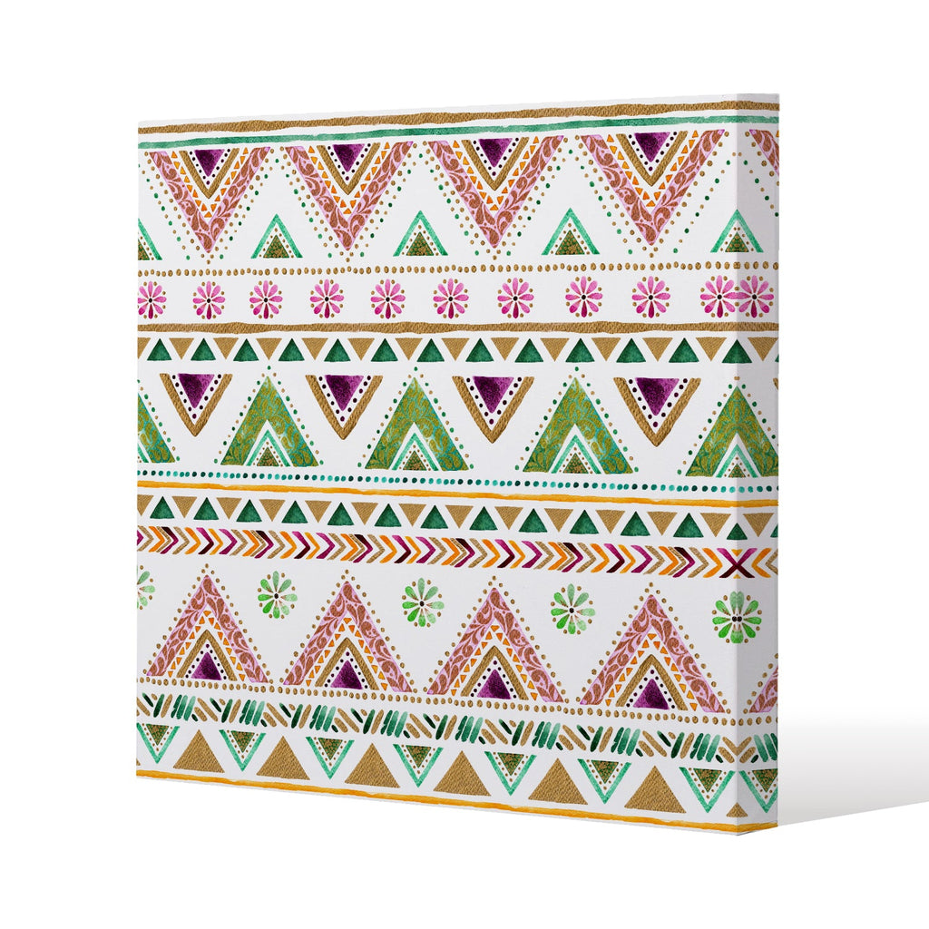 Colorful Striped gold style triangles Slim Style Canvas Print 40x40cm , 15mm Slim Real wood.