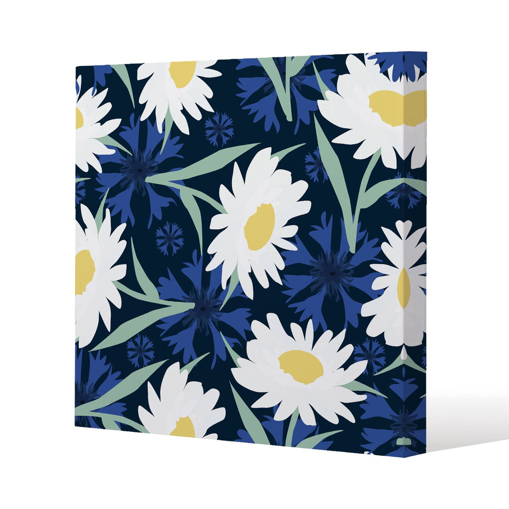 Daisies on Navy Slim Style Canvas Print 50x50cm , 15mm Slim Real wood.