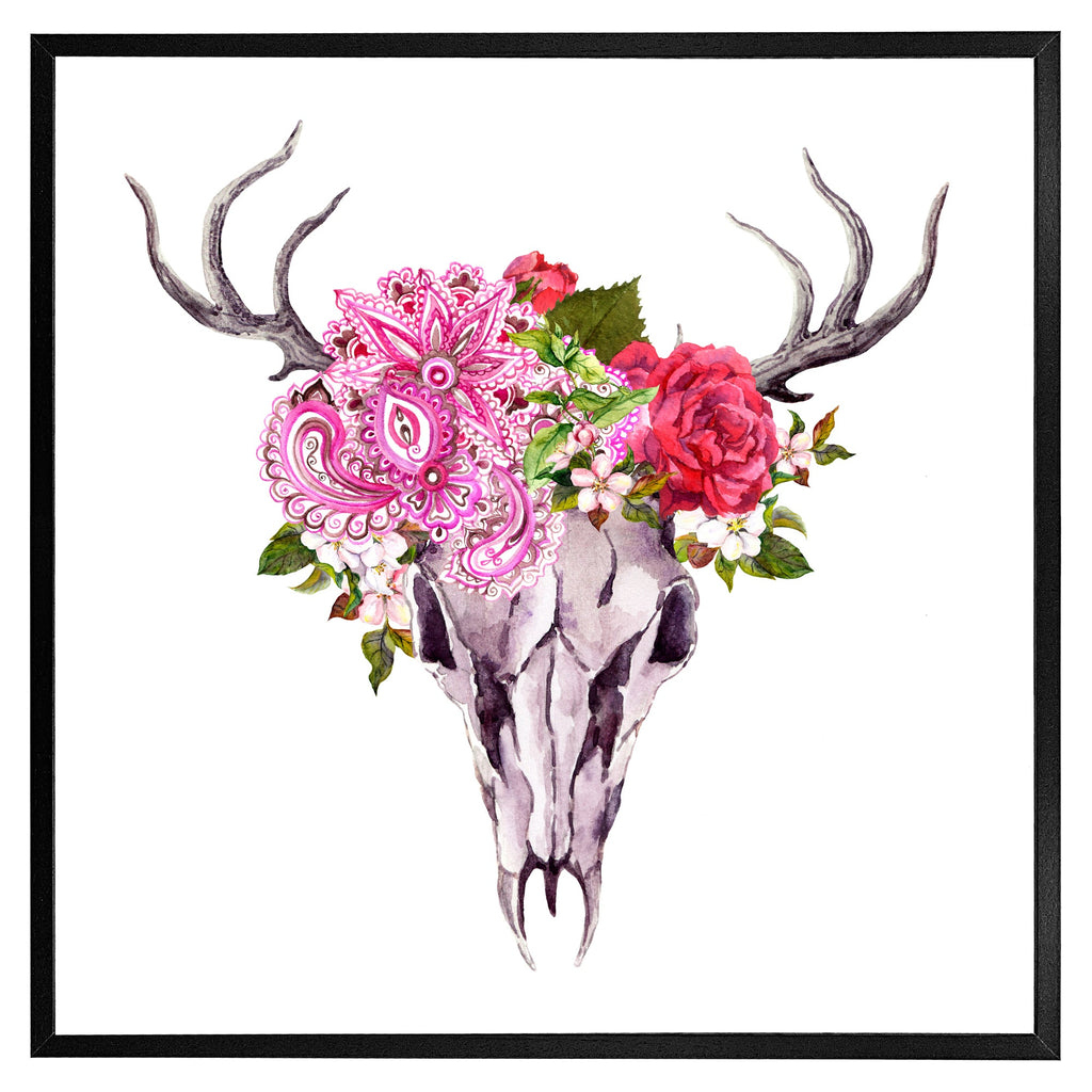 Deer animal skull with flowers and feathers (Picutre Frame)