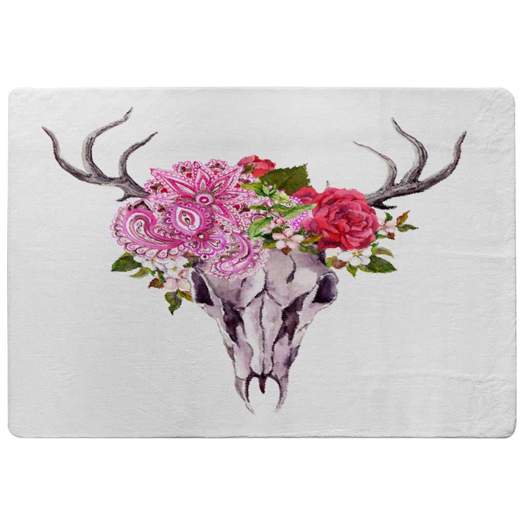 New Product Deer animal skull with flowers and feathers (Bathmat)  - Andrew Lee Home and Living