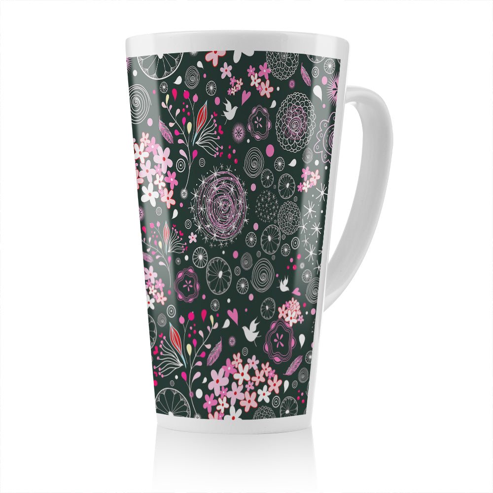 Different Flowers Shapes & Birds Latte Mug
