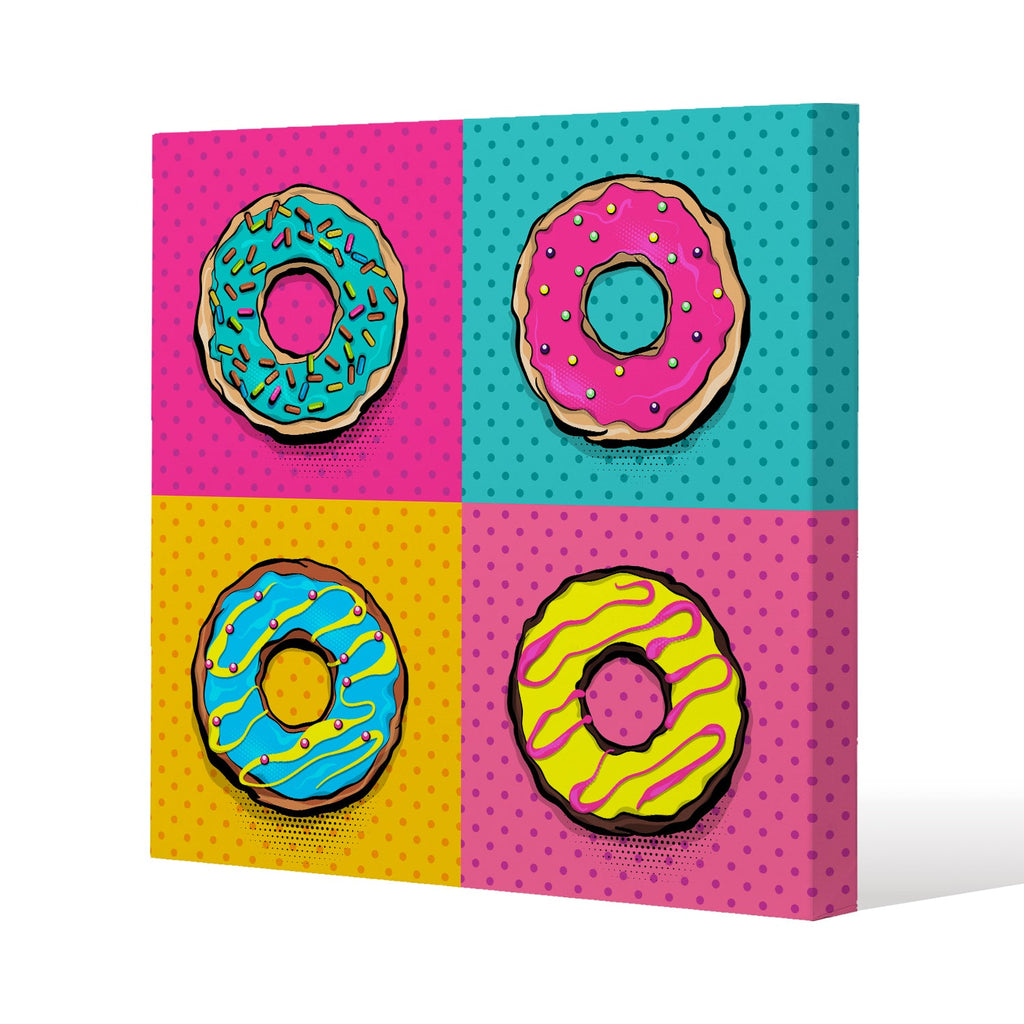 donut cartoon pop art style Slim Style Canvas Print 50x50cm , 15mm Slim Real wood.