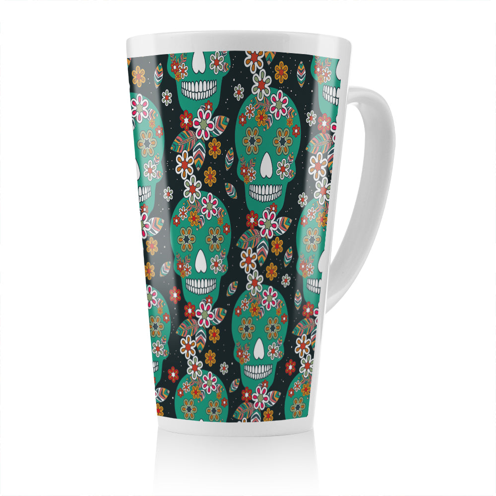 Embroidery Colorful Simplified Ethnic Flowers And Skull Pattern Latte Mug
