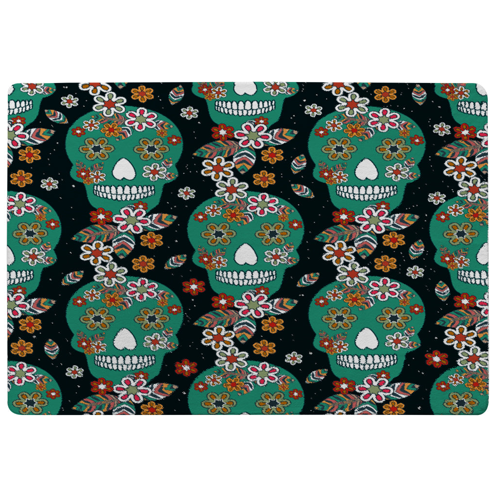 Embroidery colorful simplified ethnic flowers and skull pattern (Rug)