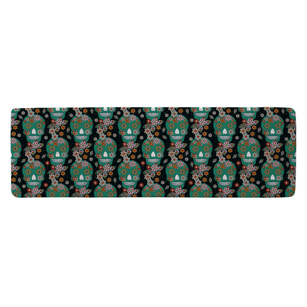 Embroidery colorful simplified ethnic flowers and skull pattern (Runner Rug)