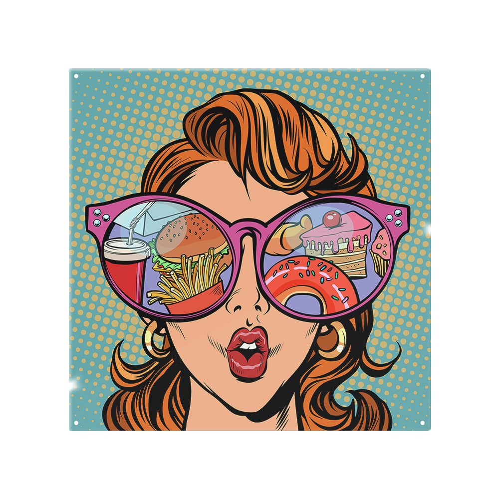 Fast food and sweets in the reflection Designer Glass Chopping Board