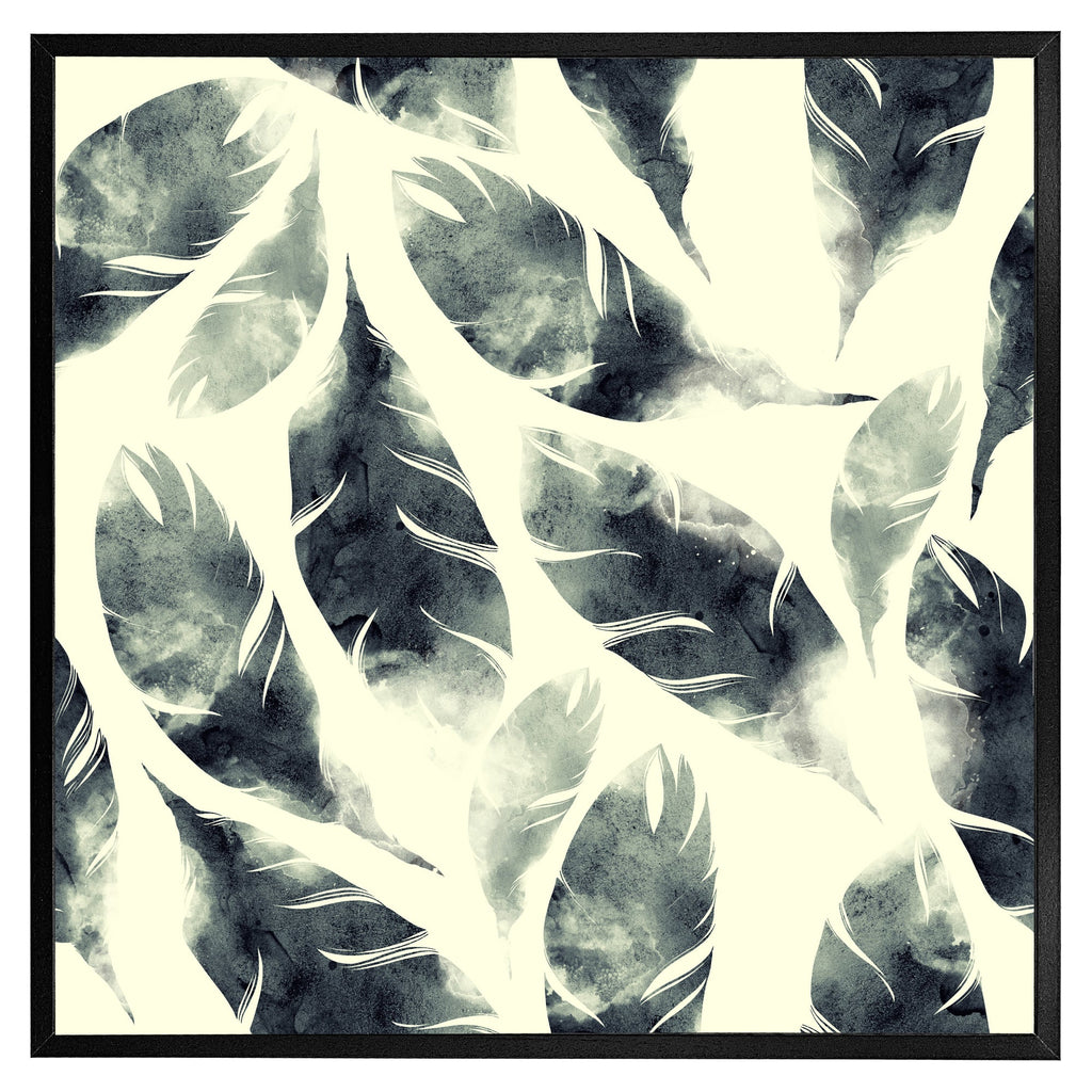 Feathers fantastic birds seamless pattern Slim Style Canvas Print 50x50cm , 15mm Slim Real wood.
