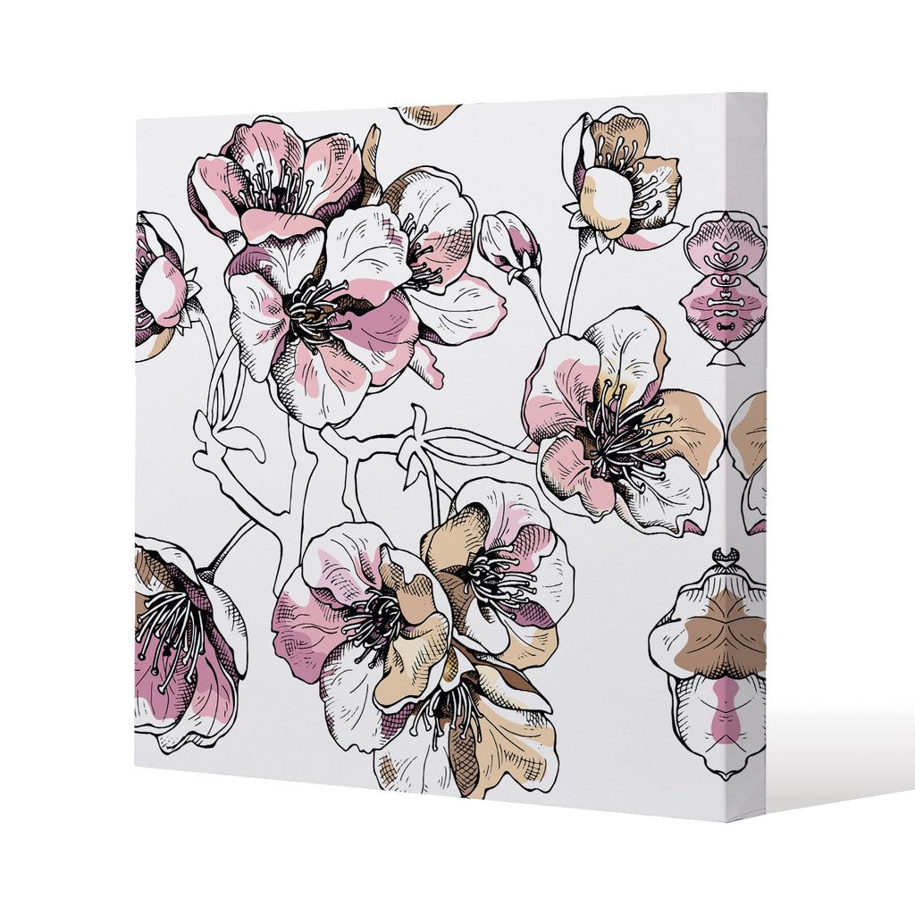 Flower Illustration Slim Style Canvas Print 75x75cm , 15mm Slim Real wood.