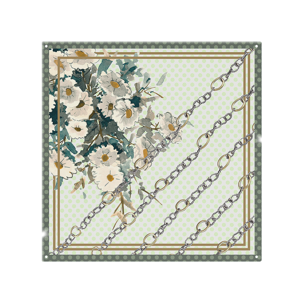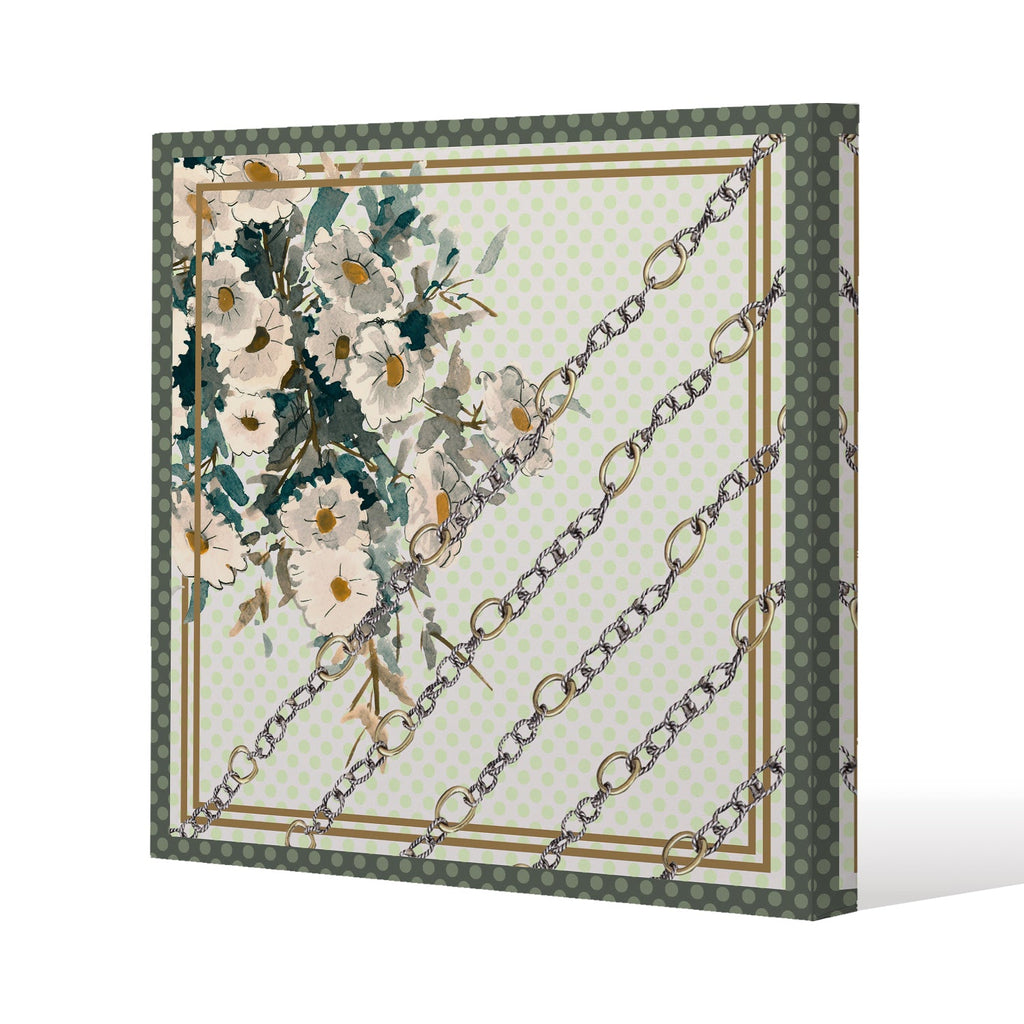 Flowers & Chain Links Slim Style Canvas Print 50x50cm , 15mm Slim Real wood.