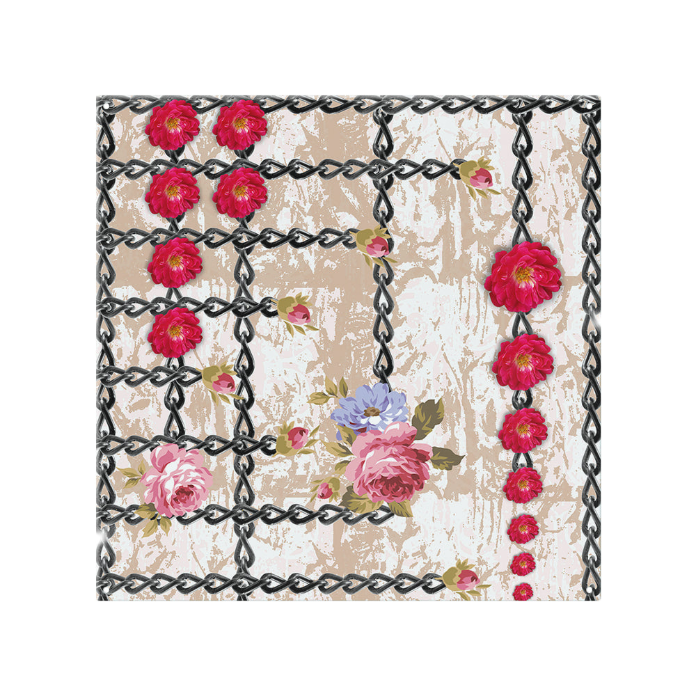 Flowers & Chain Links Slim Style Canvas Print 60x60cm , 15mm Slim Real wood.