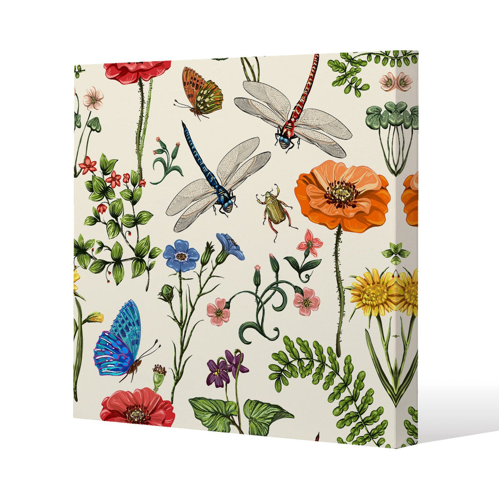 Flowers & Insects Slim Style Canvas Print 50x50cm , 15mm Slim Real wood.