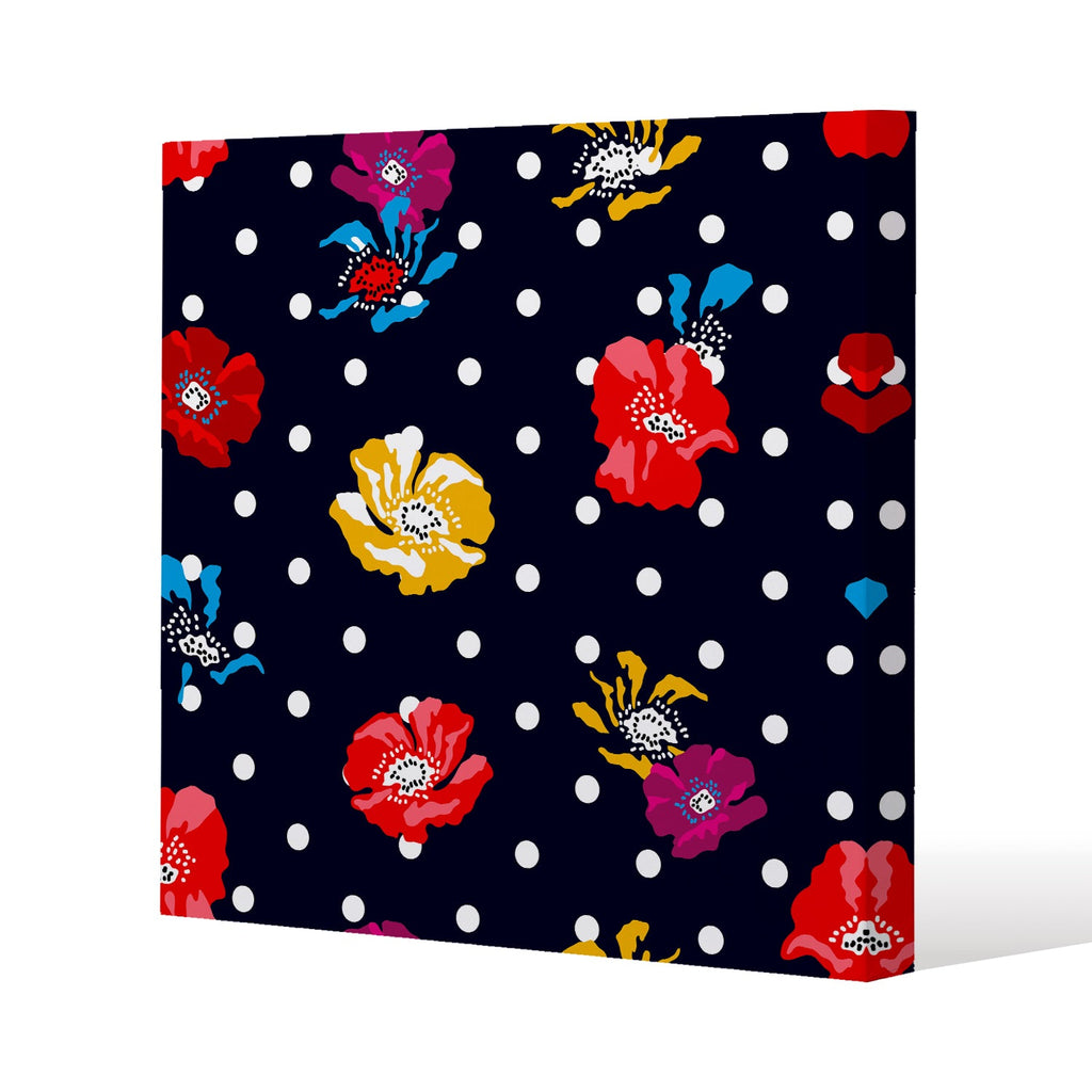 Flowers & Spots Slim Style Canvas Print 75x75cm , 15mm Slim Real wood.