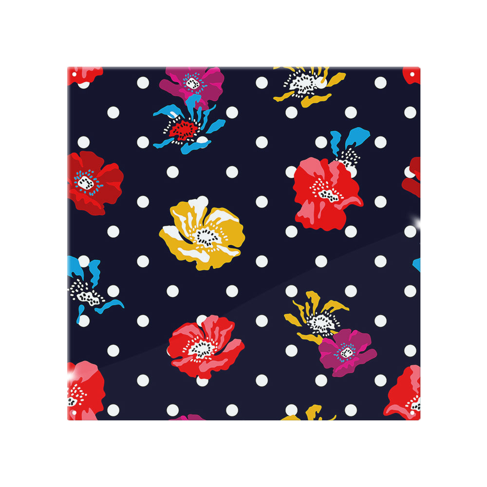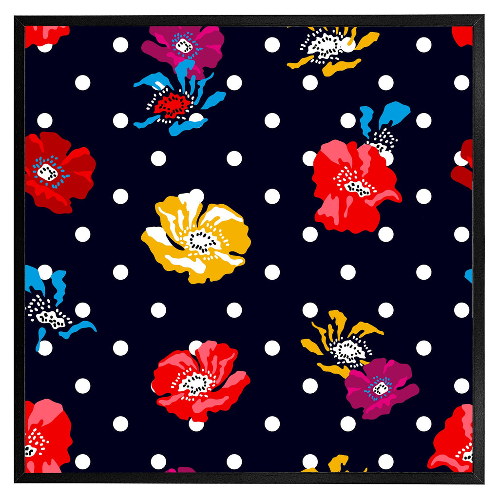 Flowers & Spots Slim Style Canvas Print 90x90cm , 15mm Slim Real wood.