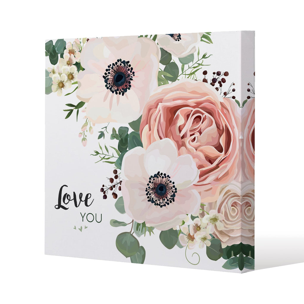 Garden Flower, Pink Peach Rose, White Anemone Slim Style Canvas Print 50x50cm , 15mm Slim Real wood.