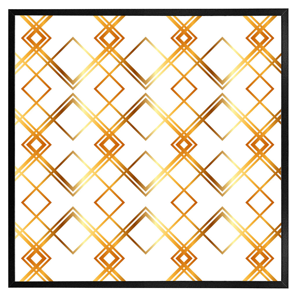 Geometric Golden Pattern Slim Style Canvas Print 90x90cm , 15mm Slim Real wood.