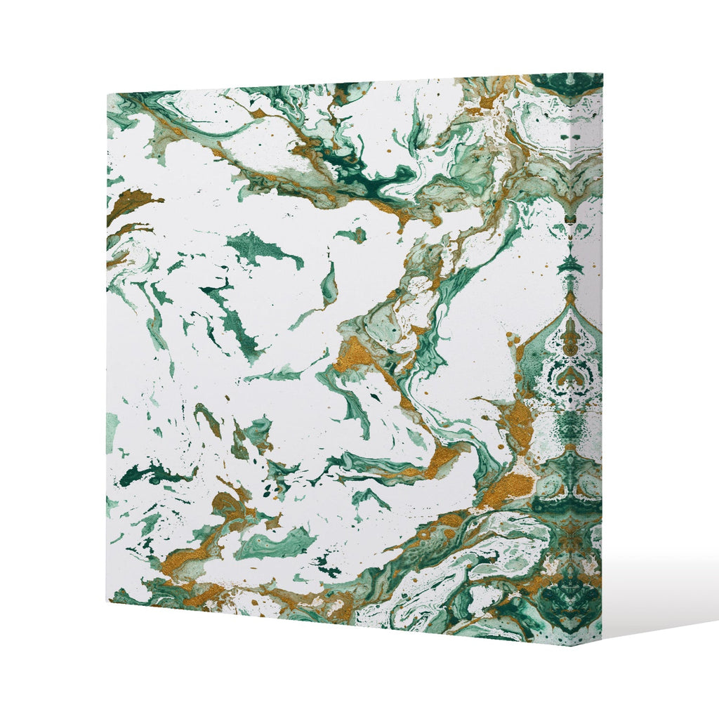 Green & Golden Marble Slim Style Canvas Print 50x50cm , 15mm Slim Real wood.