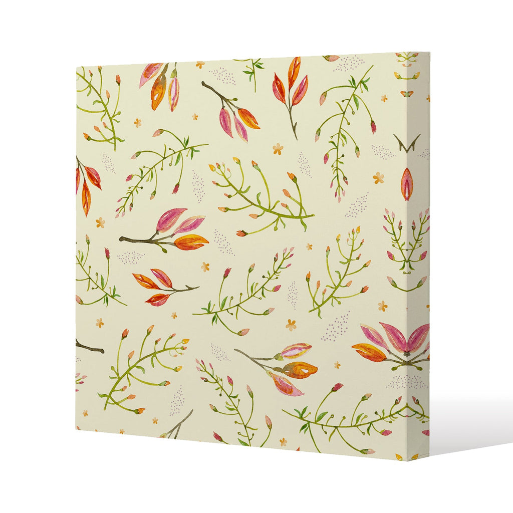 Green Branches on Light Background Slim Style Canvas Print 20x20cm , 15mm Slim Real wood.