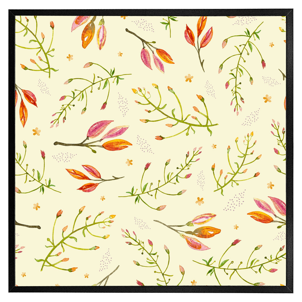 Green Branches on Light Background Slim Style Canvas Print 40x40cm , 15mm Slim Real wood.
