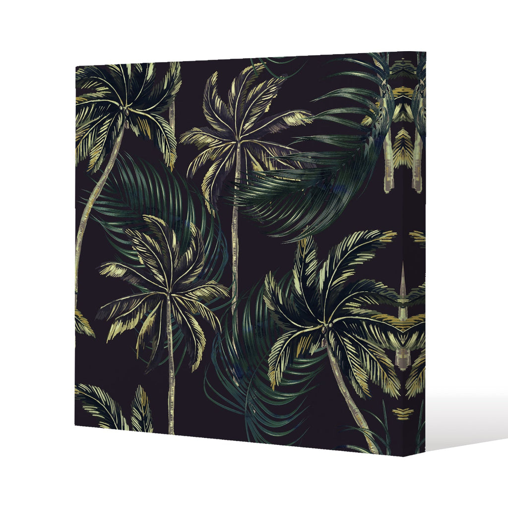 Green Palm on Black Slim Style Canvas Print 50x50cm , 15mm Slim Real wood.