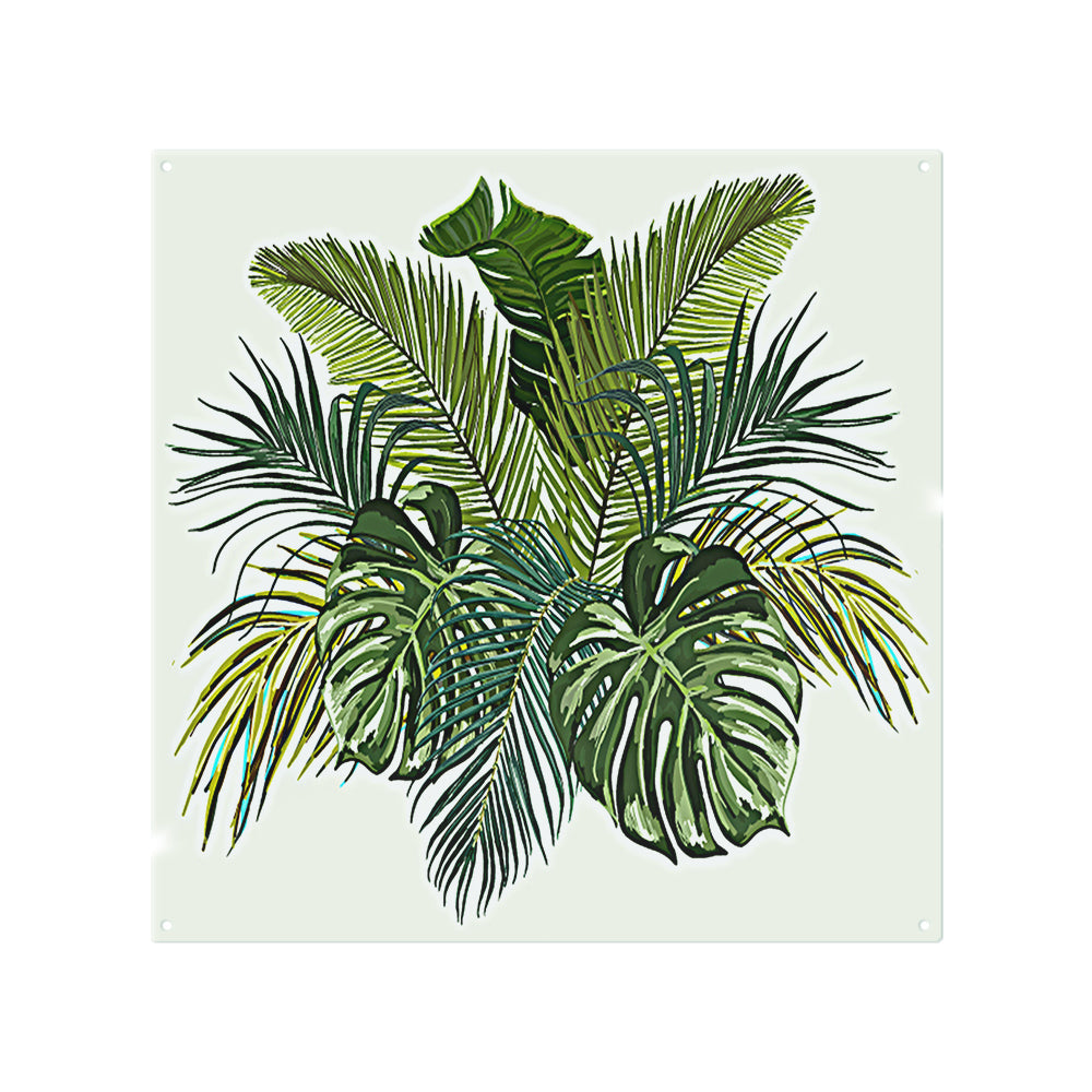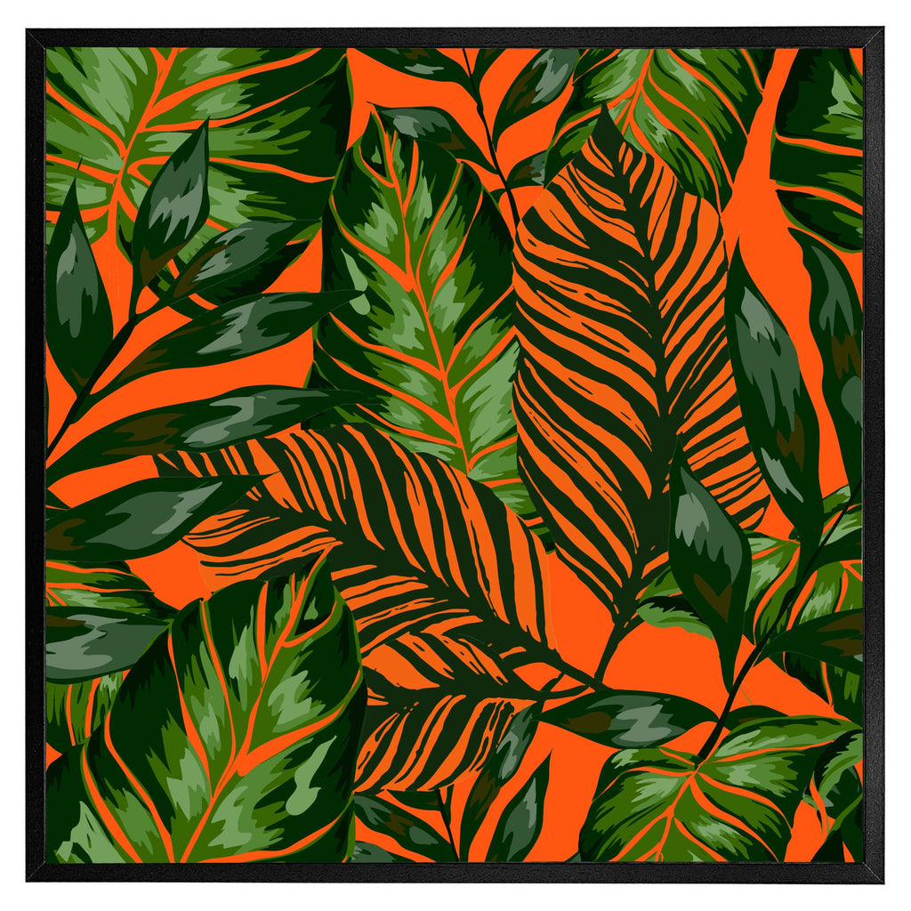 Green Tropical Leaves on Orange Slim Style Canvas Print 20x20cm , 15mm Slim Real wood.