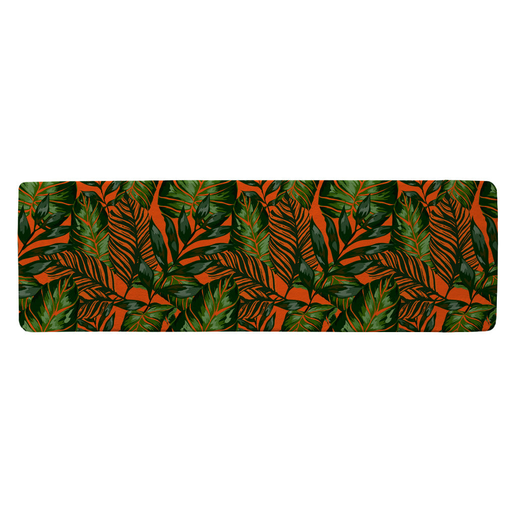 New Product Green Tropical Leaves on Orange (Bath Mat)  - Andrew Lee Home and Living