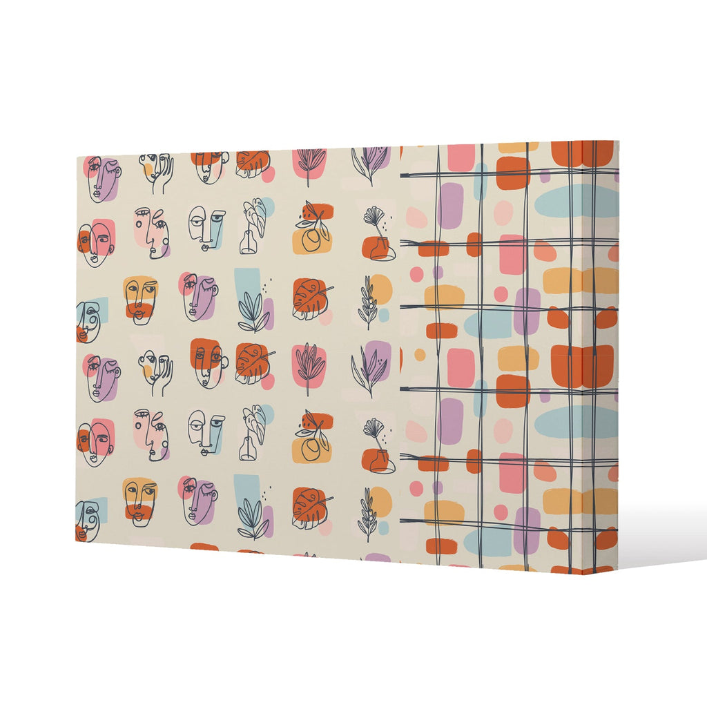Leaves and Flowers, Abstract shapes Slim Style Canvas Print 90x120cm , 15mm Slim Real wood.