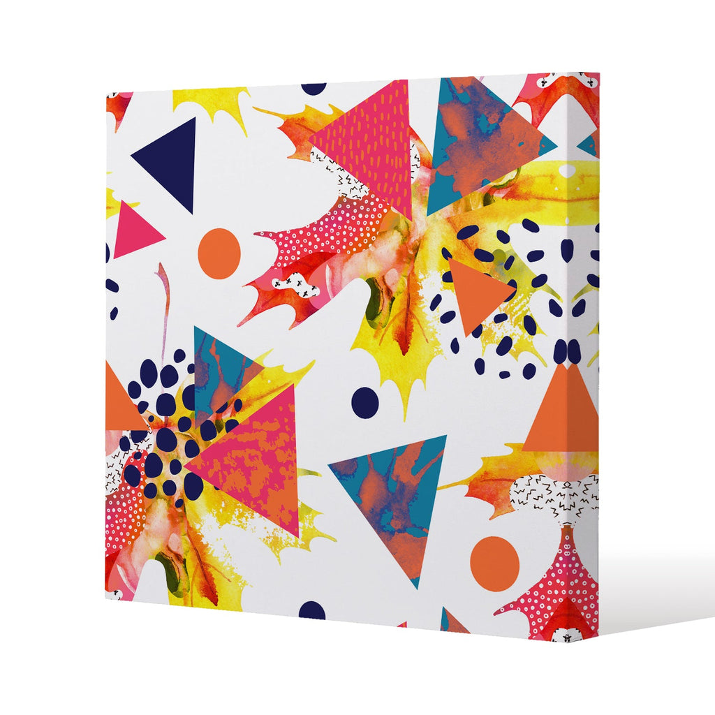 Maple Leaves & Geometric Patterns Slim Style Canvas Print 20x20cm , 15mm Slim Real wood.