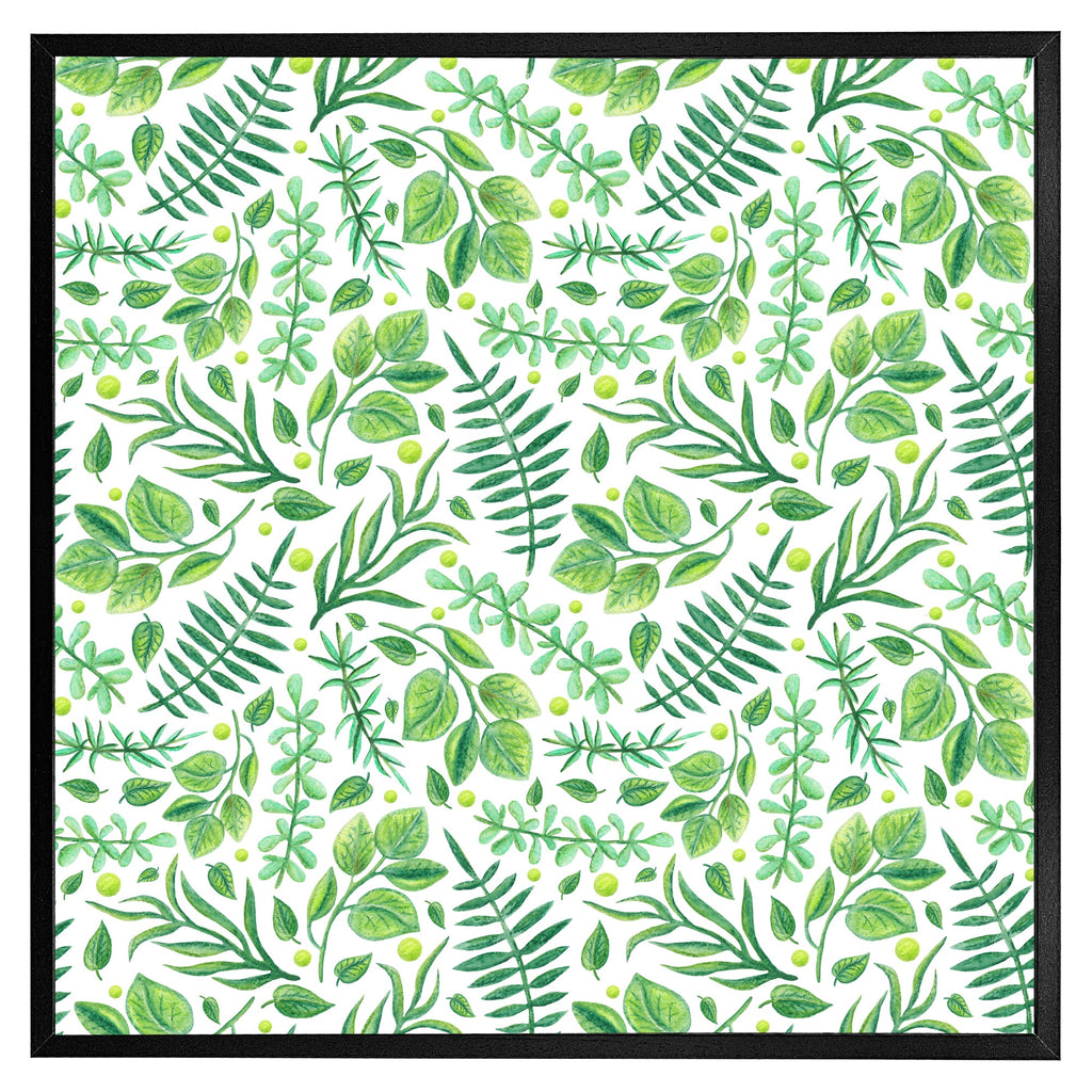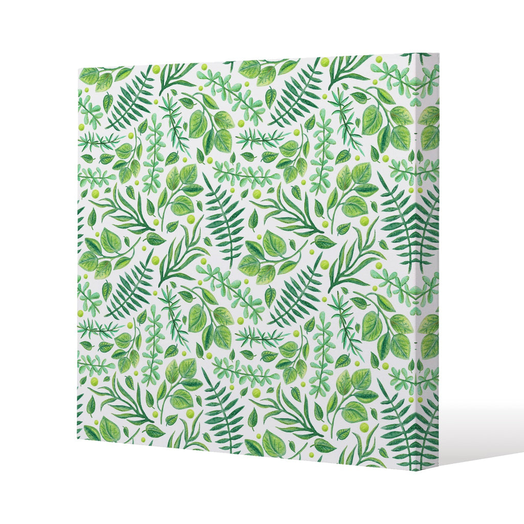Mixed Green Leaves Slim Style Canvas Print 50x50cm , 15mm Slim Real wood.