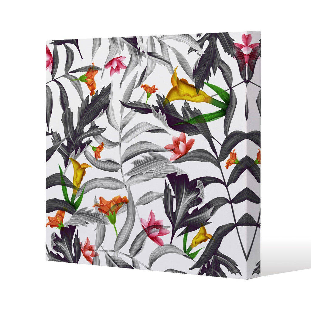 Monochrome Leaves Slim Style Canvas Print 75x75cm , 15mm Slim Real wood.
