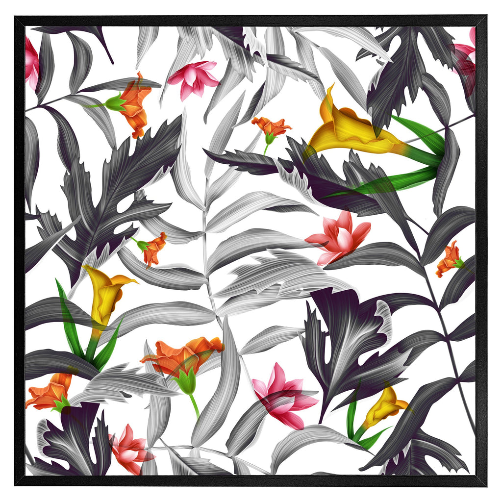 Monochrome Leaves Slim Style Canvas Print 50x50cm , 15mm Slim Real wood.