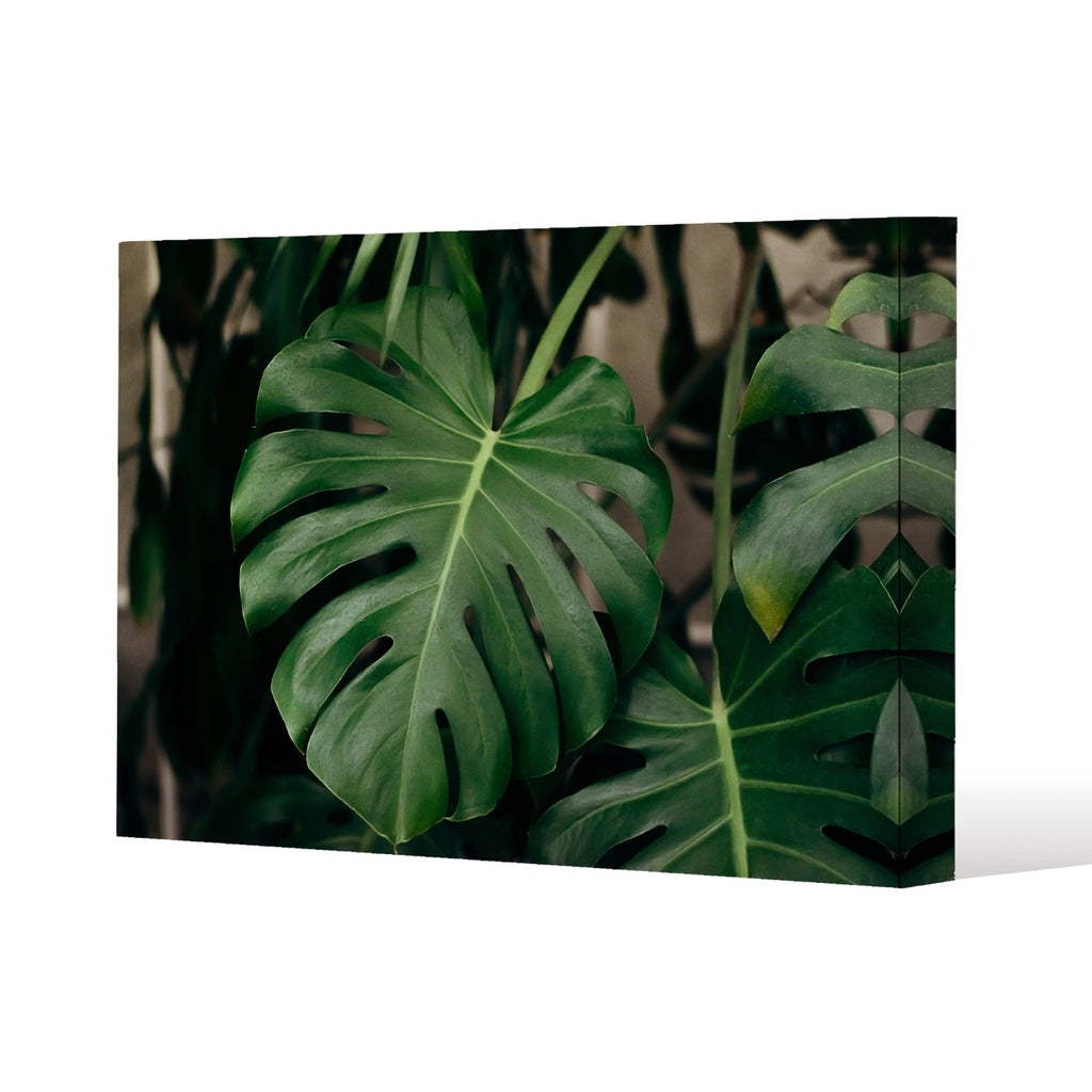Monstera Leaves in home interior Slim Style Canvas Print 50x60cm , 15mm Slim Real wood.
