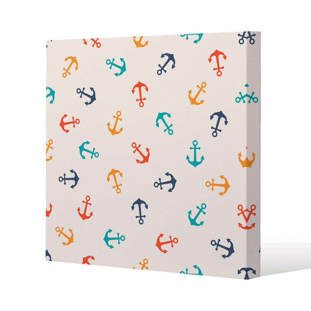 Multi Coloured Anchors Slim Style Canvas Print 50x50cm , 15mm Slim Real wood.