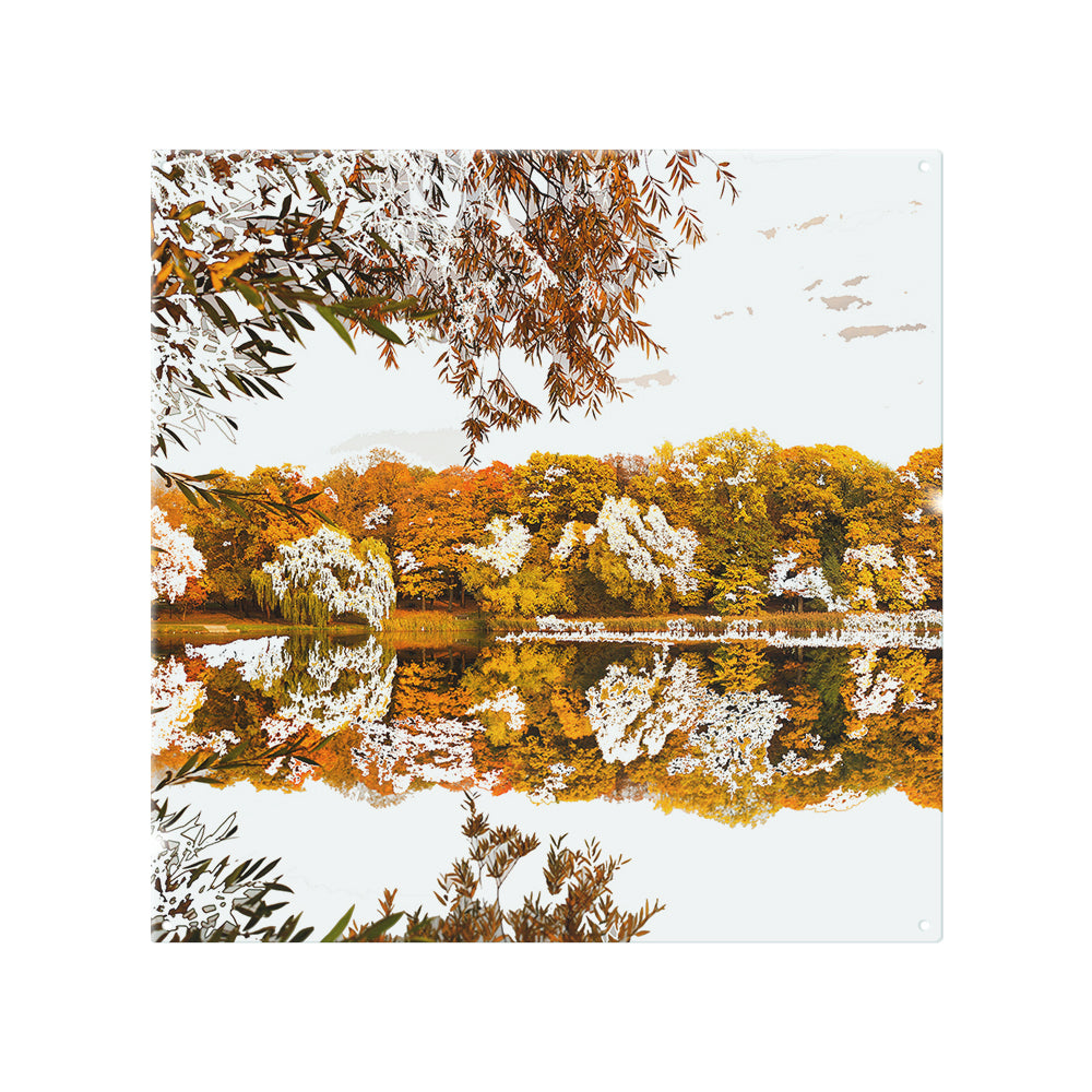 Autumn Geometrics with Maple Leaves Slim Style Canvas Print 90x90cm , 15mm Slim Real wood.