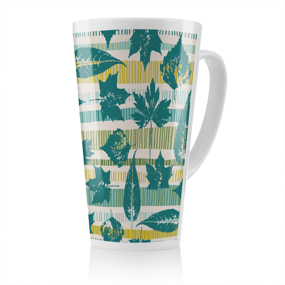 Autumn Pattern With Leaves On Geometric Latte Mug